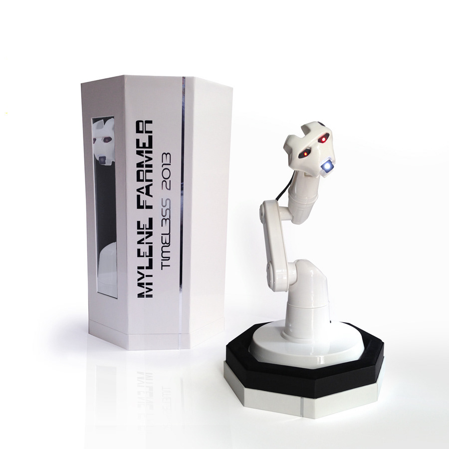 Pour le projet Nevermore, j’ai conçu le coffret hexagonal en hauteur ainsi que la figurine thermoformée, en collaboration avec le chef de projet du bureau d’études de MPO. Le coffret intègre un digipack avec l’album du concert et la figurine, équipée d’un dispositif électrique pour l’illumination des yeux et de la bouche.