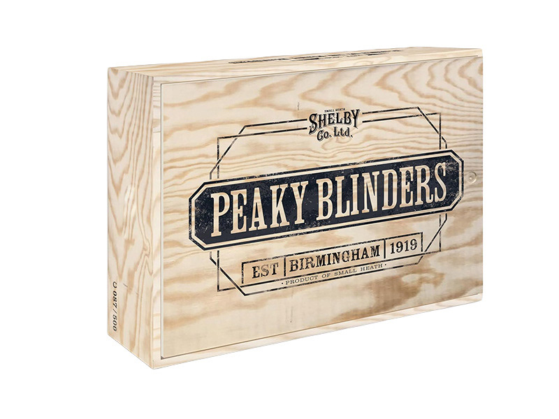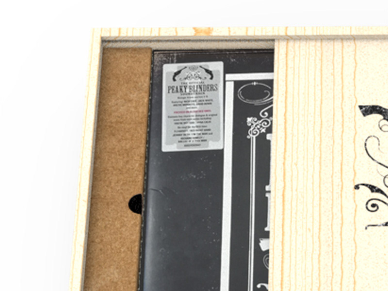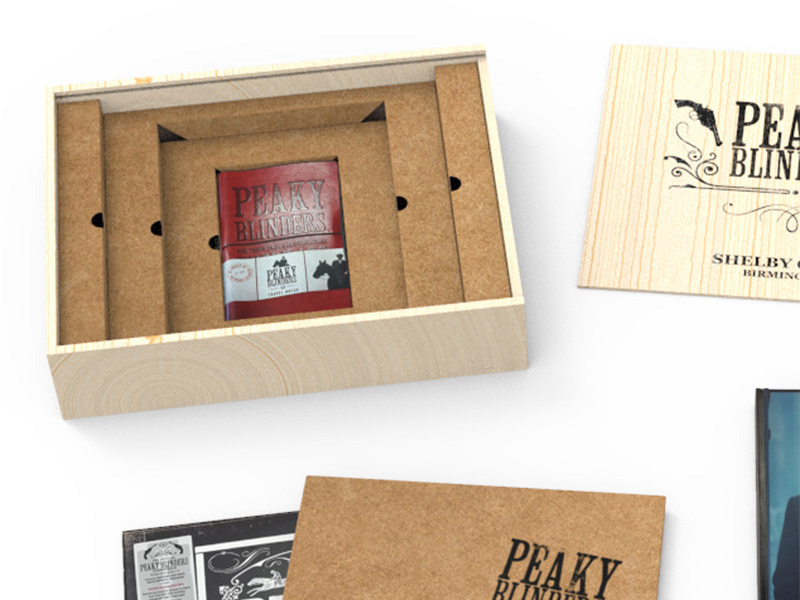À l’occasion de la sortie de l’intégrale de la série Peaky Blinders, j’ai participé à la conception d’un coffret collector en bois véritable, pensé comme un objet d’exception reflétant l’univers brut et sophistiqué de la licence. Le coffret devait accueillir un vinyle, un DVD et plusieurs objets de collection, tout en conservant une esthétique “héritage”.